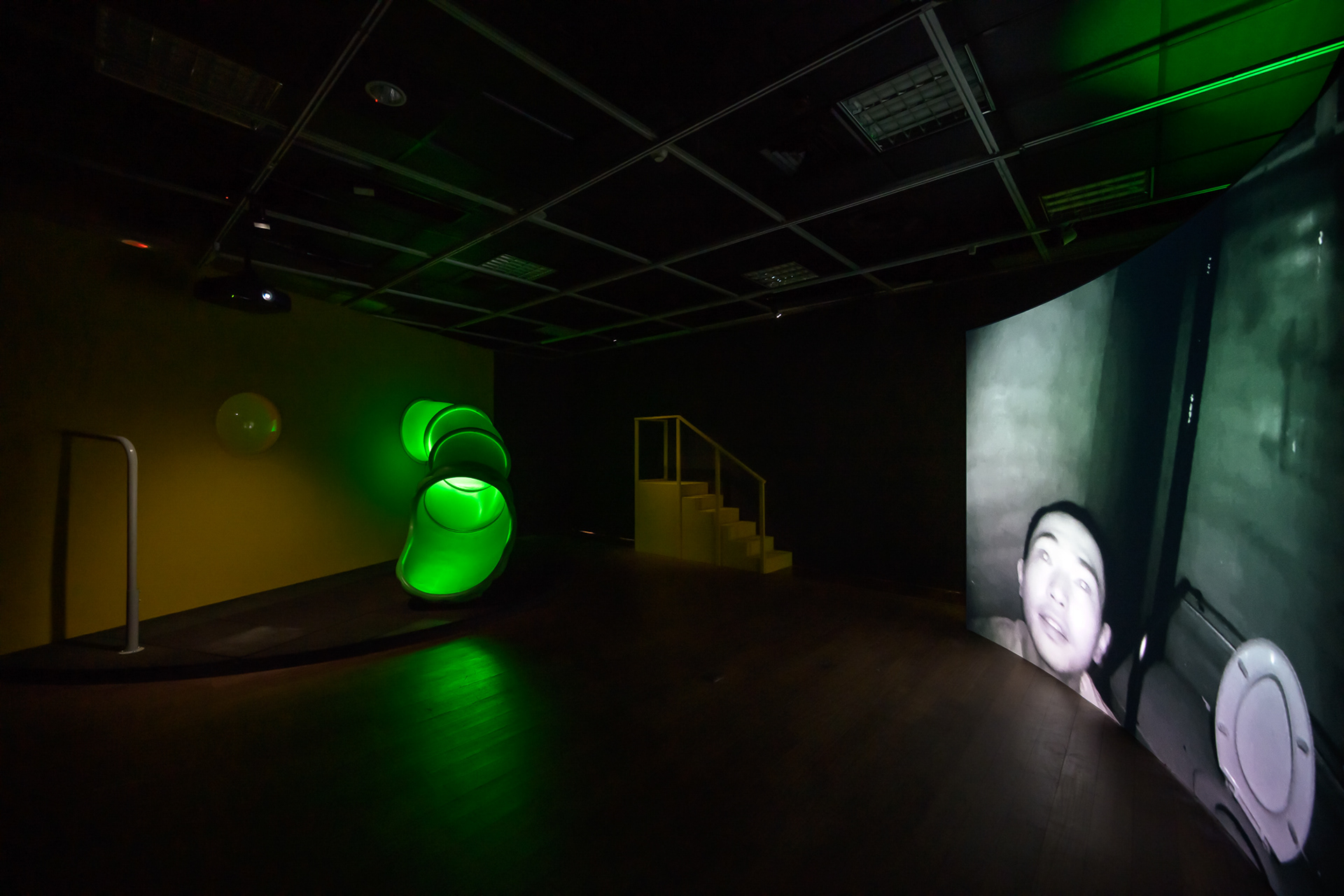 藝術家|楊傑懷 & 呂柏勳 媒材|聚乙烯滑梯組件、木作、透明壓克力罩;兩部單頻道動態影像